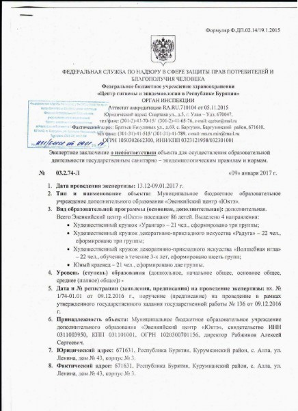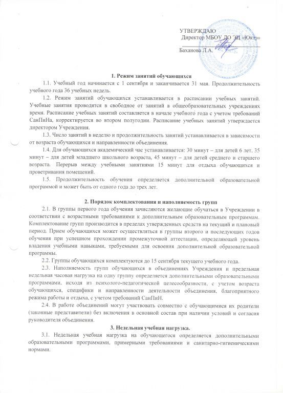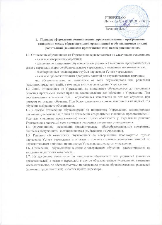ПОЛОЖЕНИЕ о порядке приема и комплектования обучающихся по дополнительным общеобразовательным программам в МБОУ ДО ЭЦ Юктэ