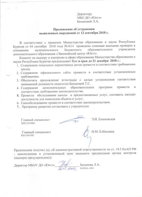 Предписания органов, осуществляющих государственный контроль (надзор) в сфере образования, отчеты об исполнении таких предписаний (при наличии)